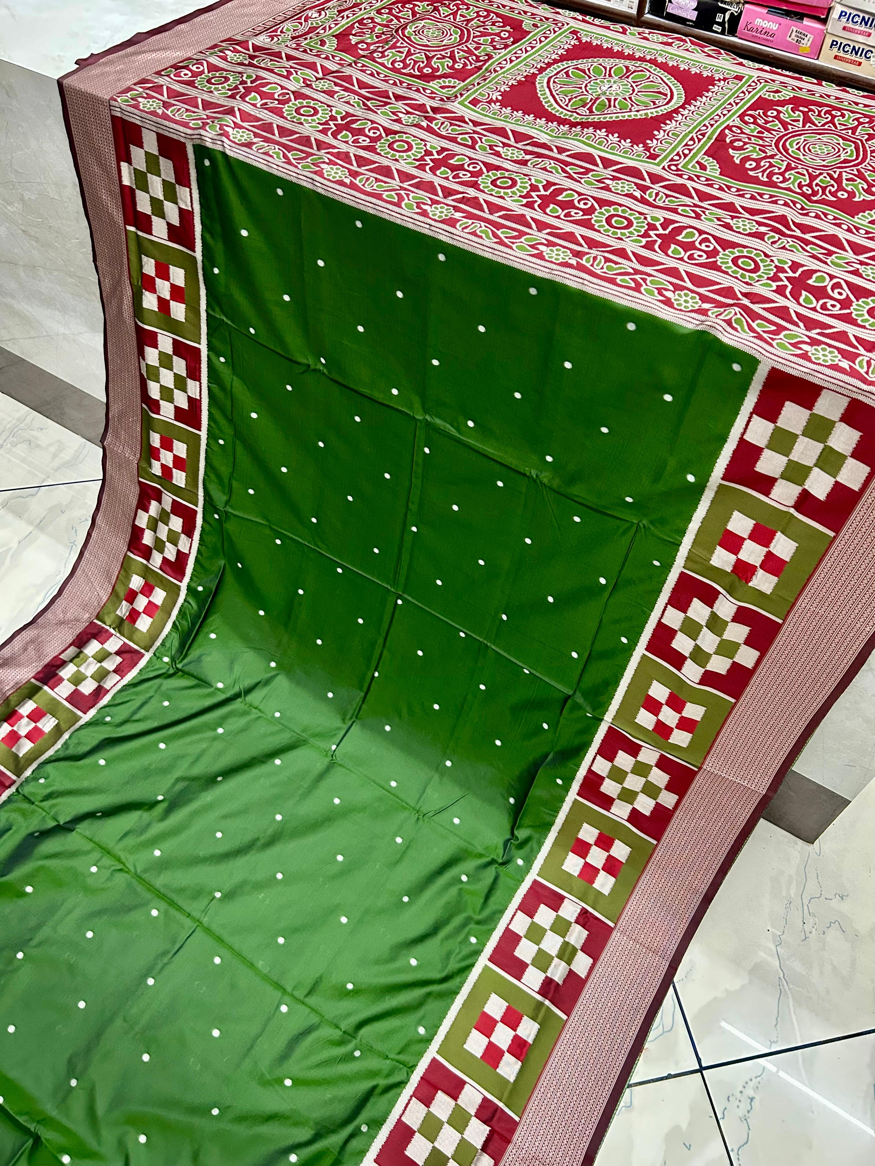 Pista Green with Olive tones Pure Mashru Silk Saree