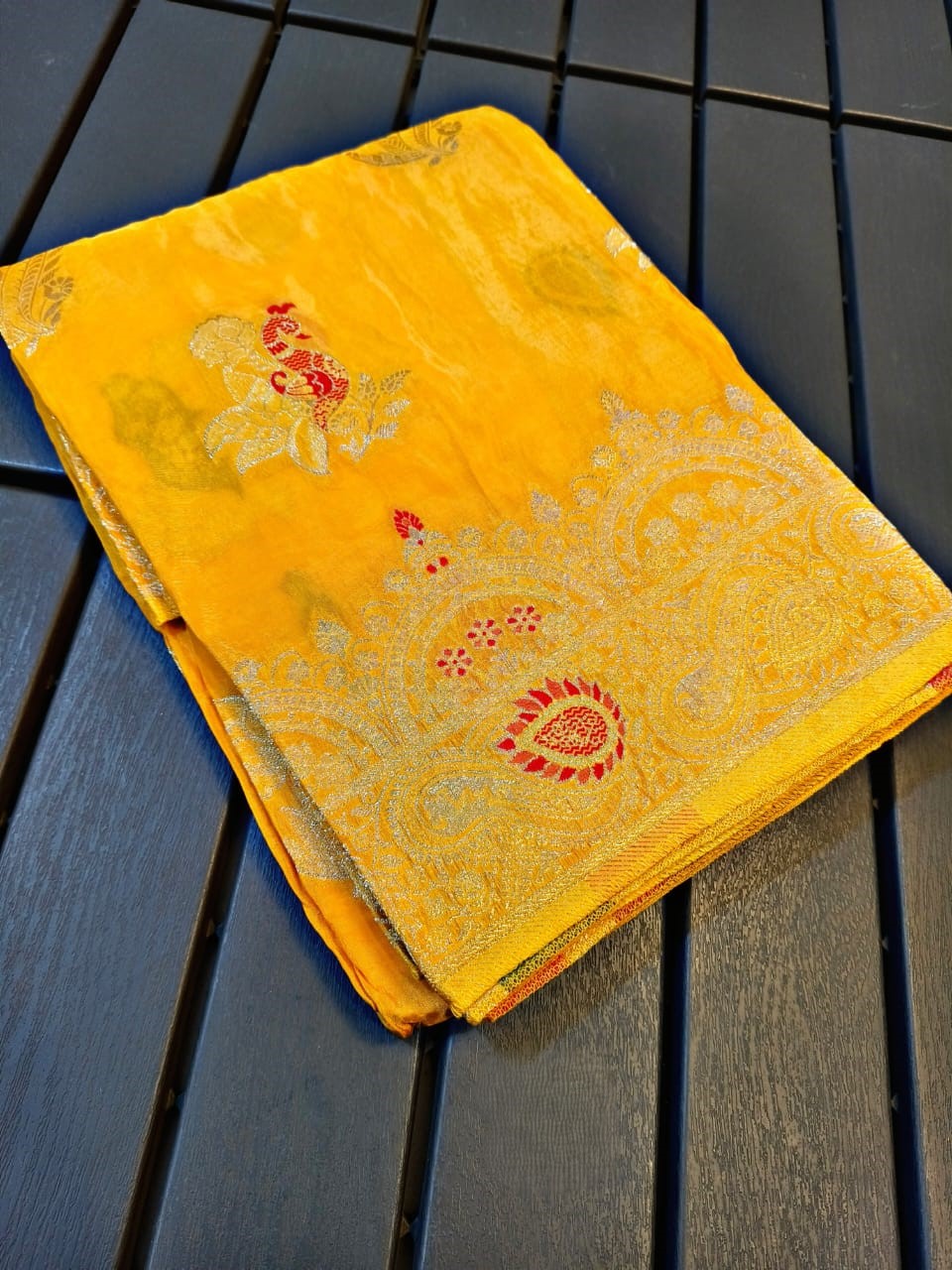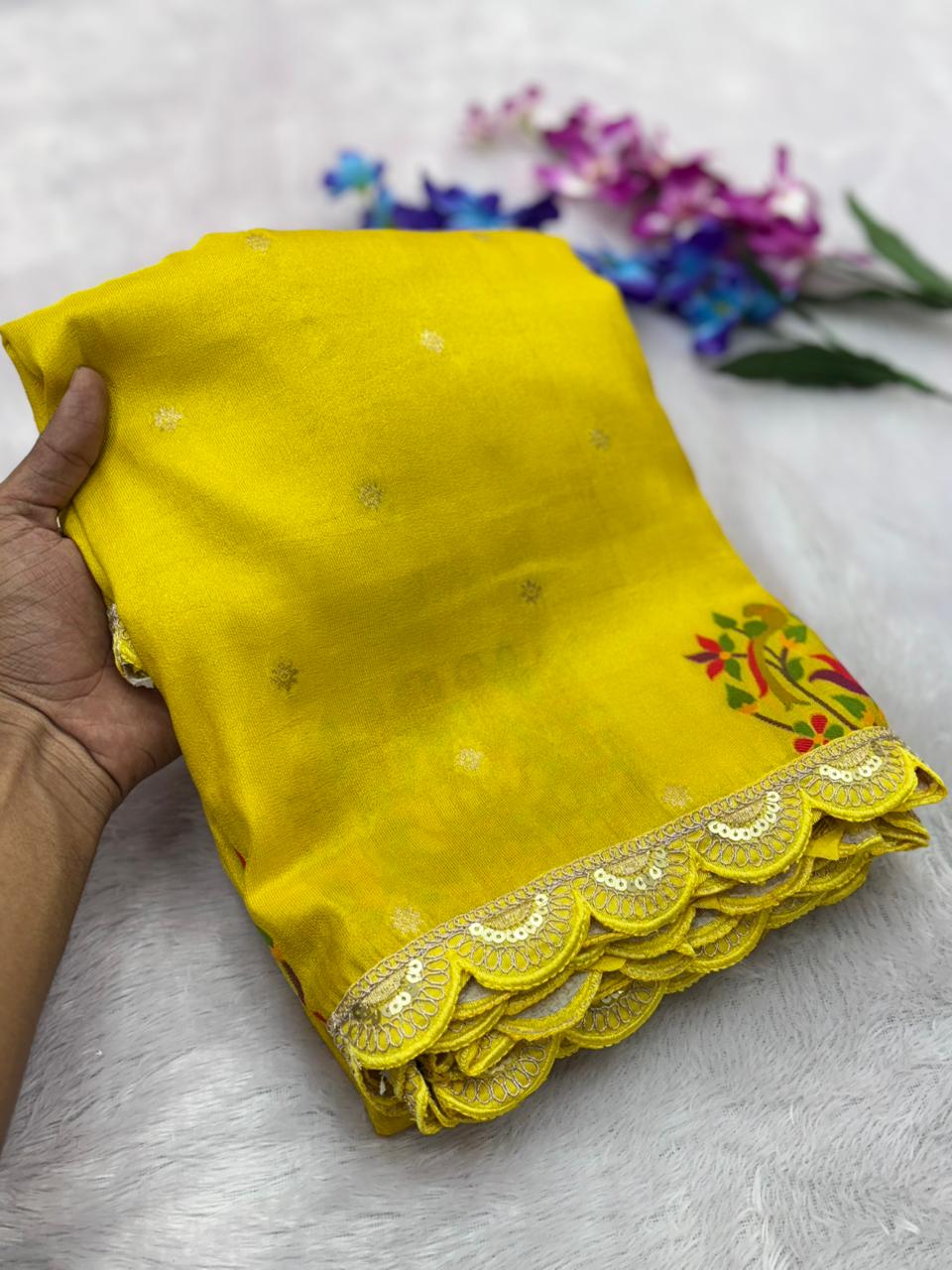 Bright Yellow (Mustard Yellow) Tissue Shimmer Silk Paithani Saree