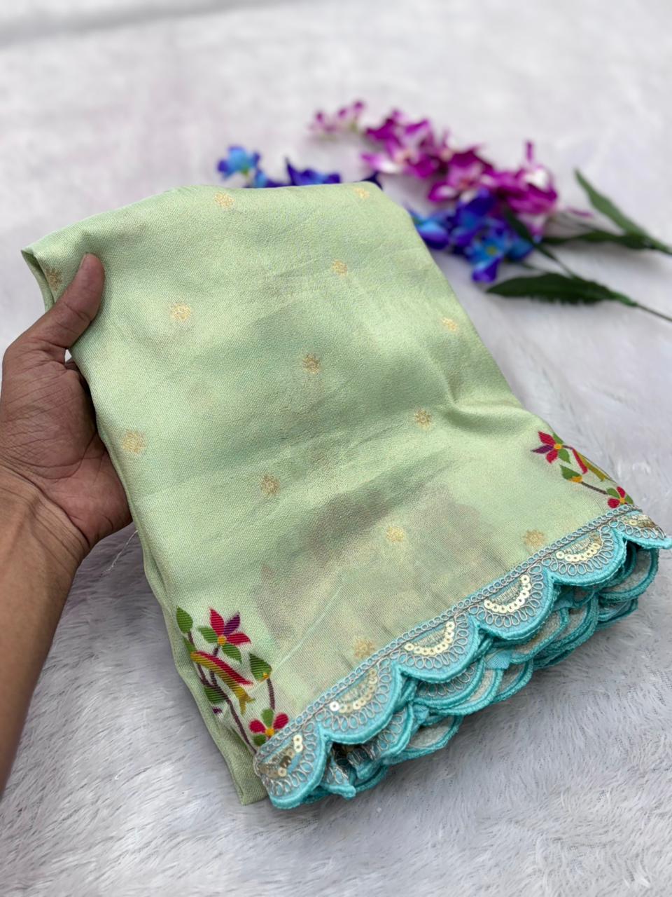 Mint Green / Pastel Green Tissue Shimmer Silk Paithani Saree