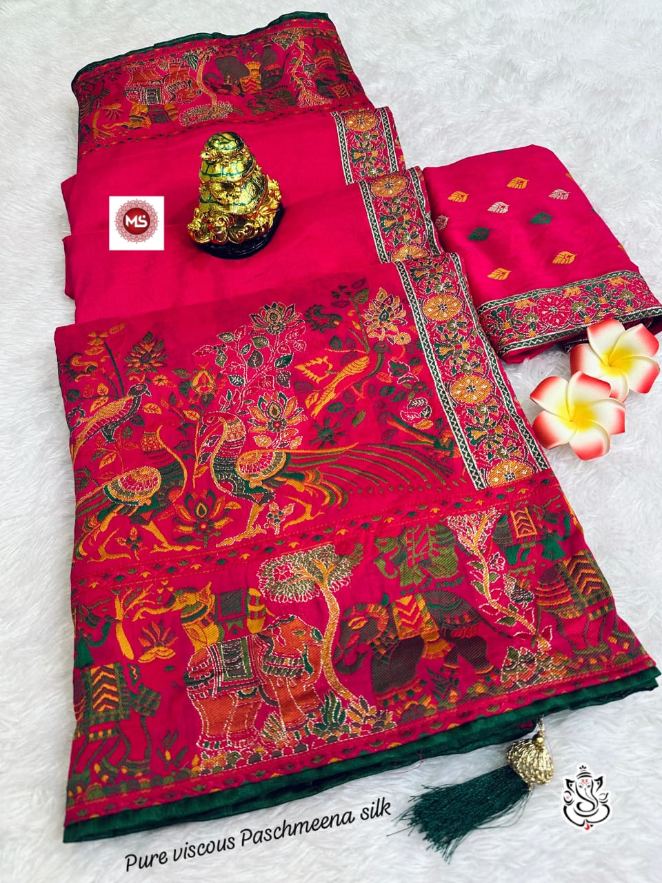 Deep Magenta Tissue Shimmer Silk Paithani Saree
