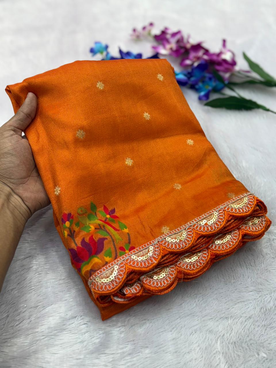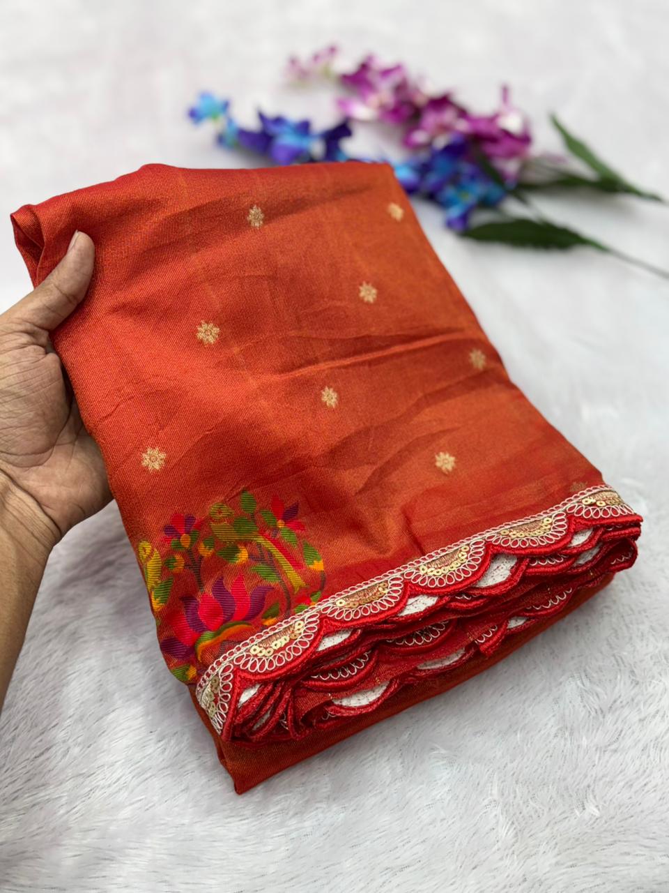 Burnt Orange Tissue Shimmer Silk Paithani Saree