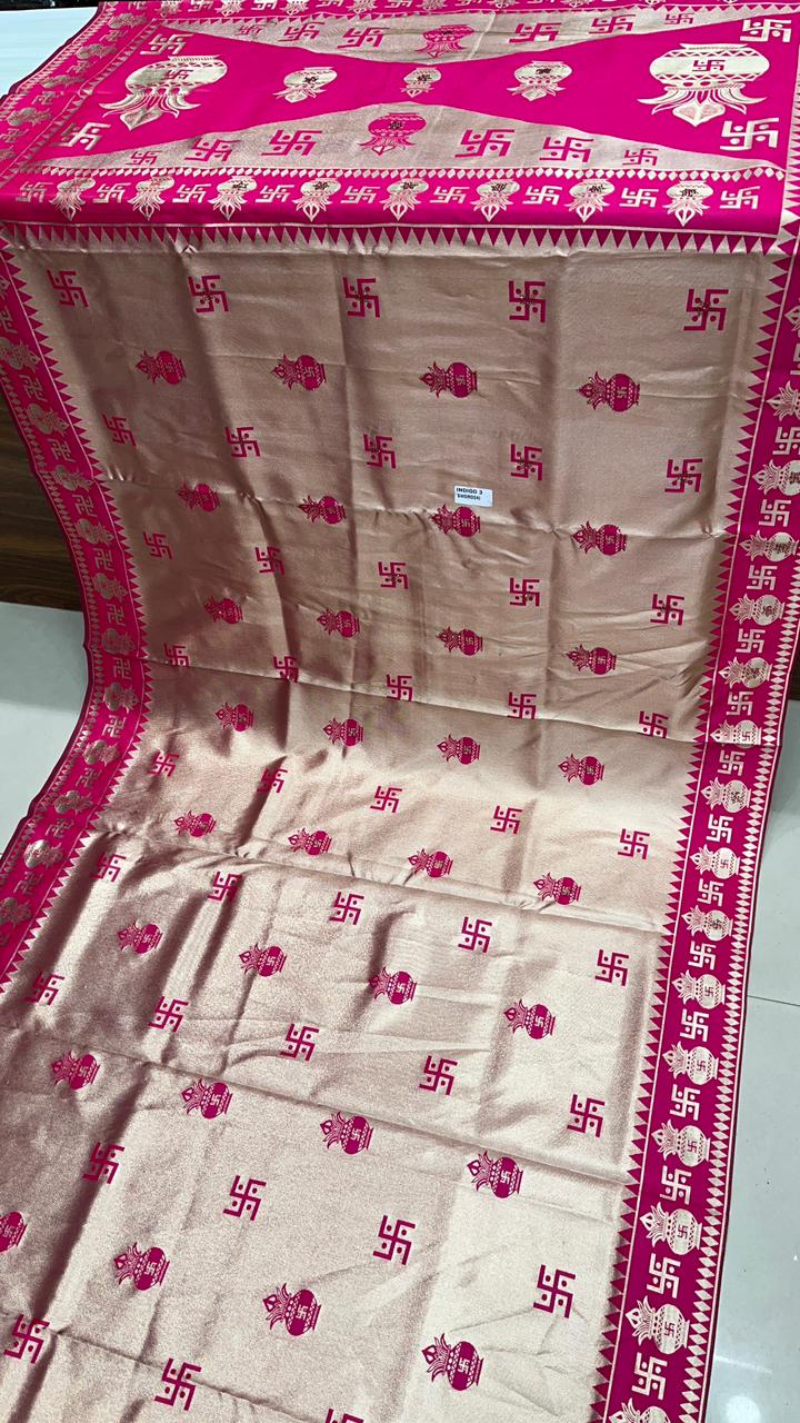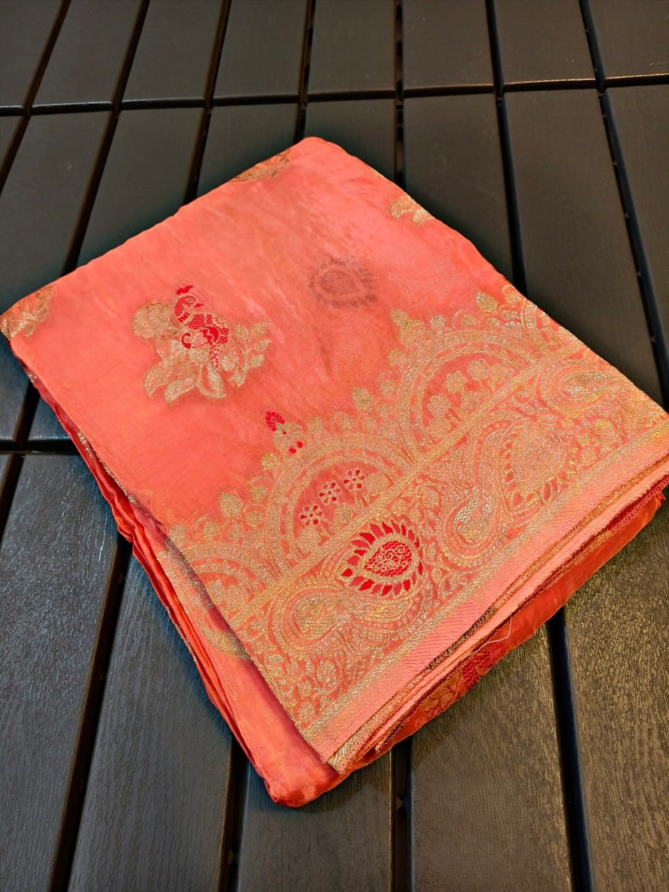 Coral Peach / Reddish Peach Pure Mashru Silk Saree