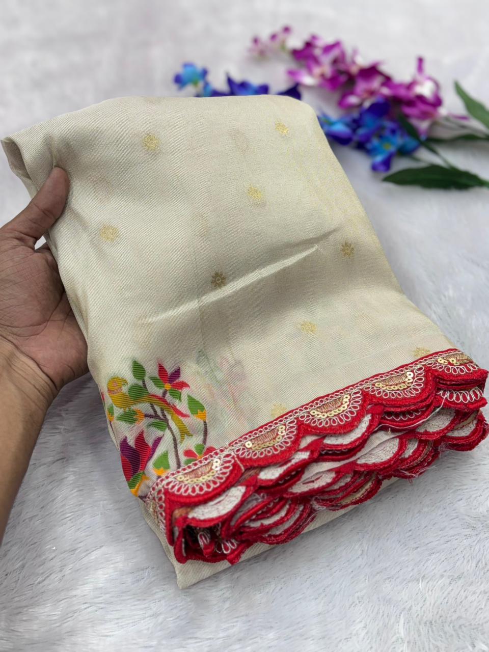 Ivory / Off-White Tissue Shimmer Silk Paithani Saree