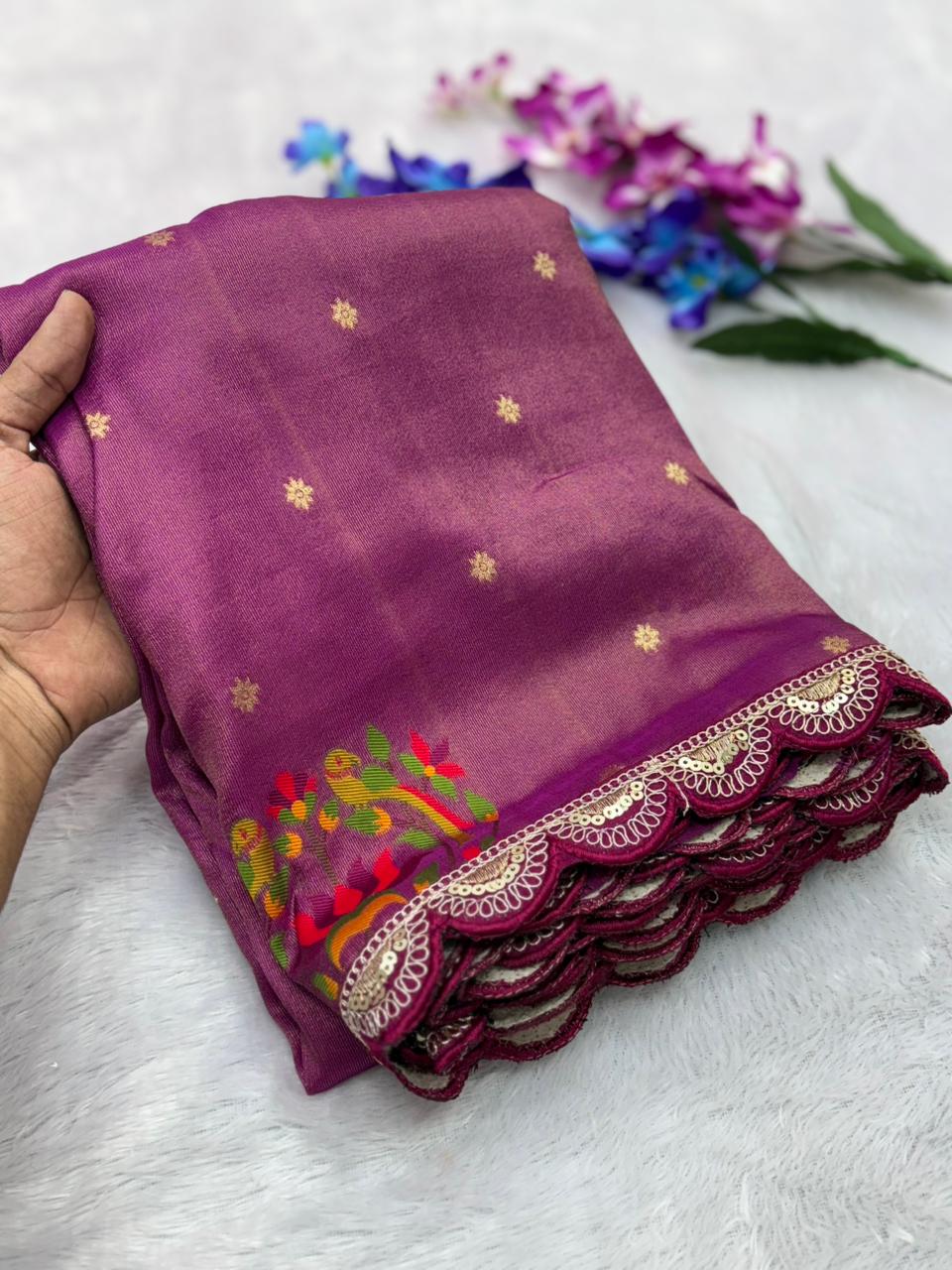 Royal Purple Tissue Shimmer Silk Paithani Saree
