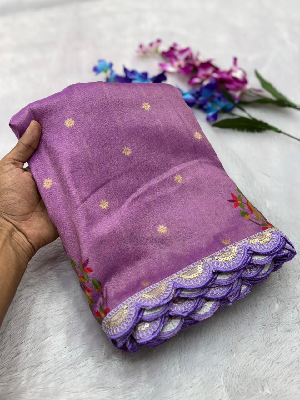 Lavender Purple Tissue Shimmer Silk Paithani Saree