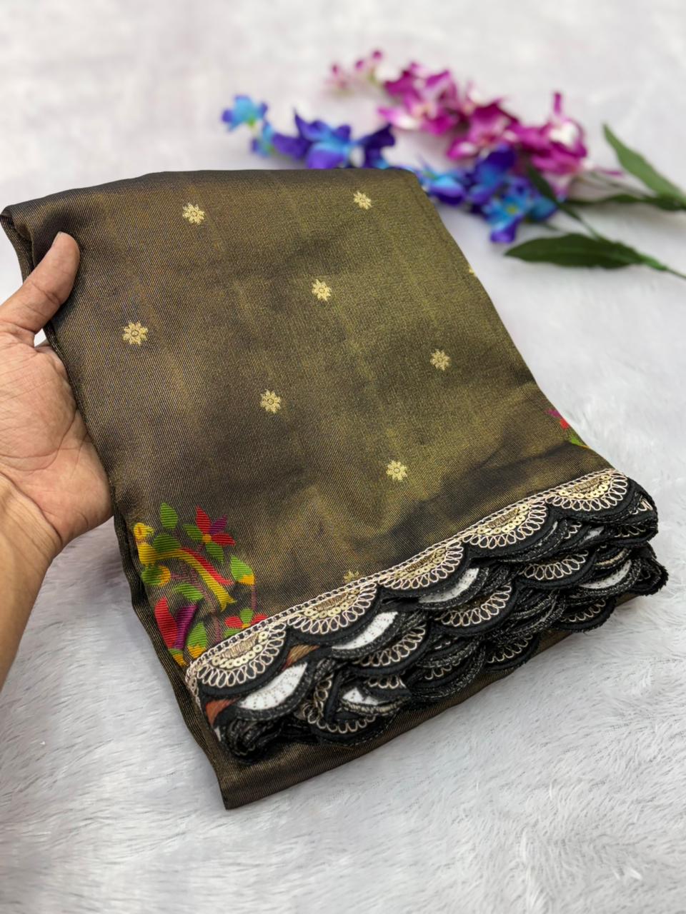Olive Brown / Mud Brown Tissue Shimmer Silk Paithani Saree