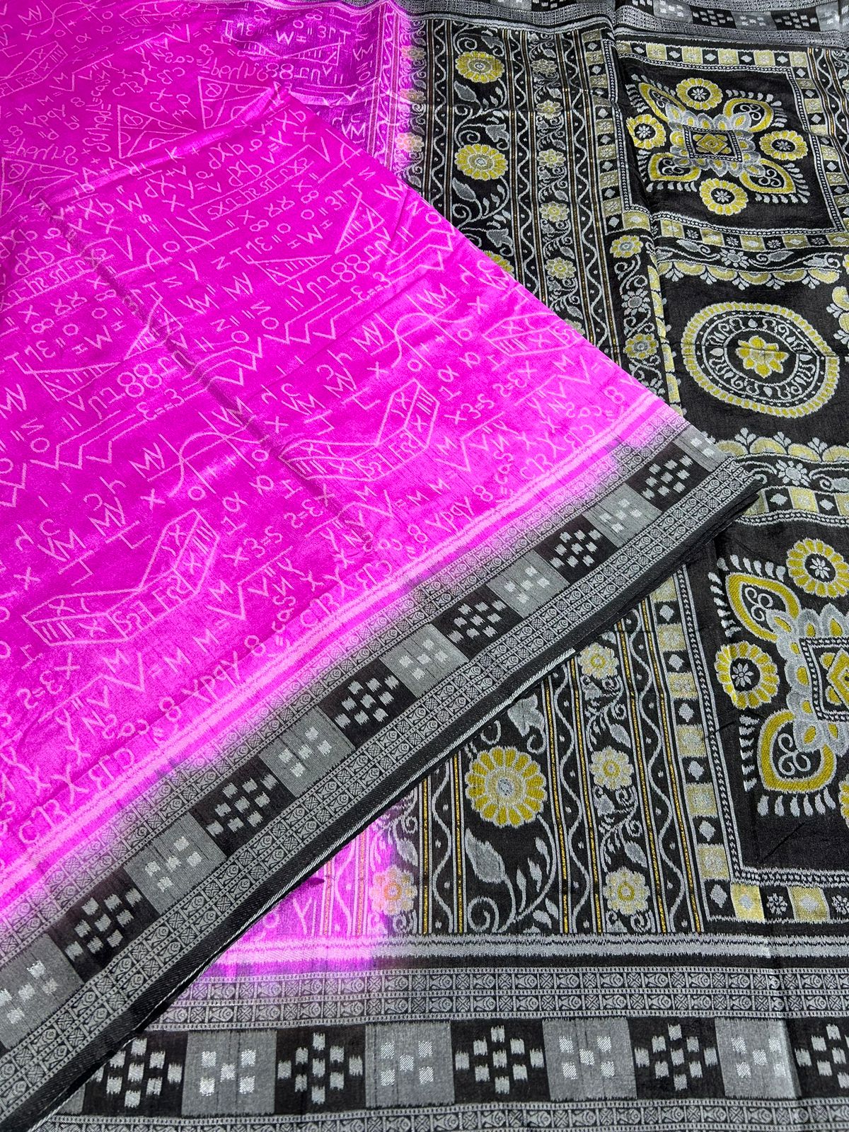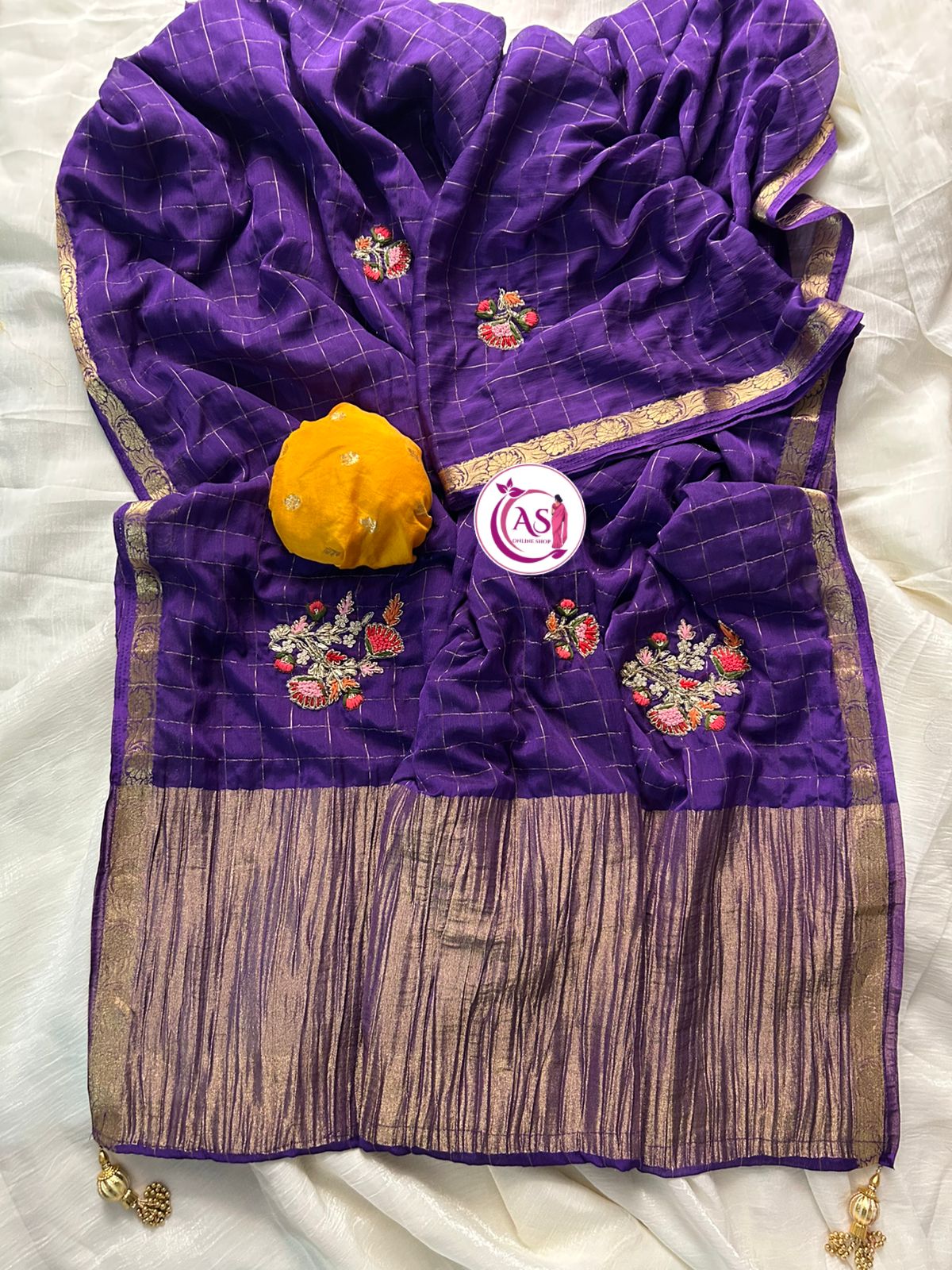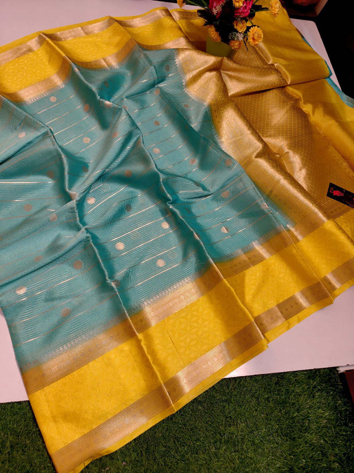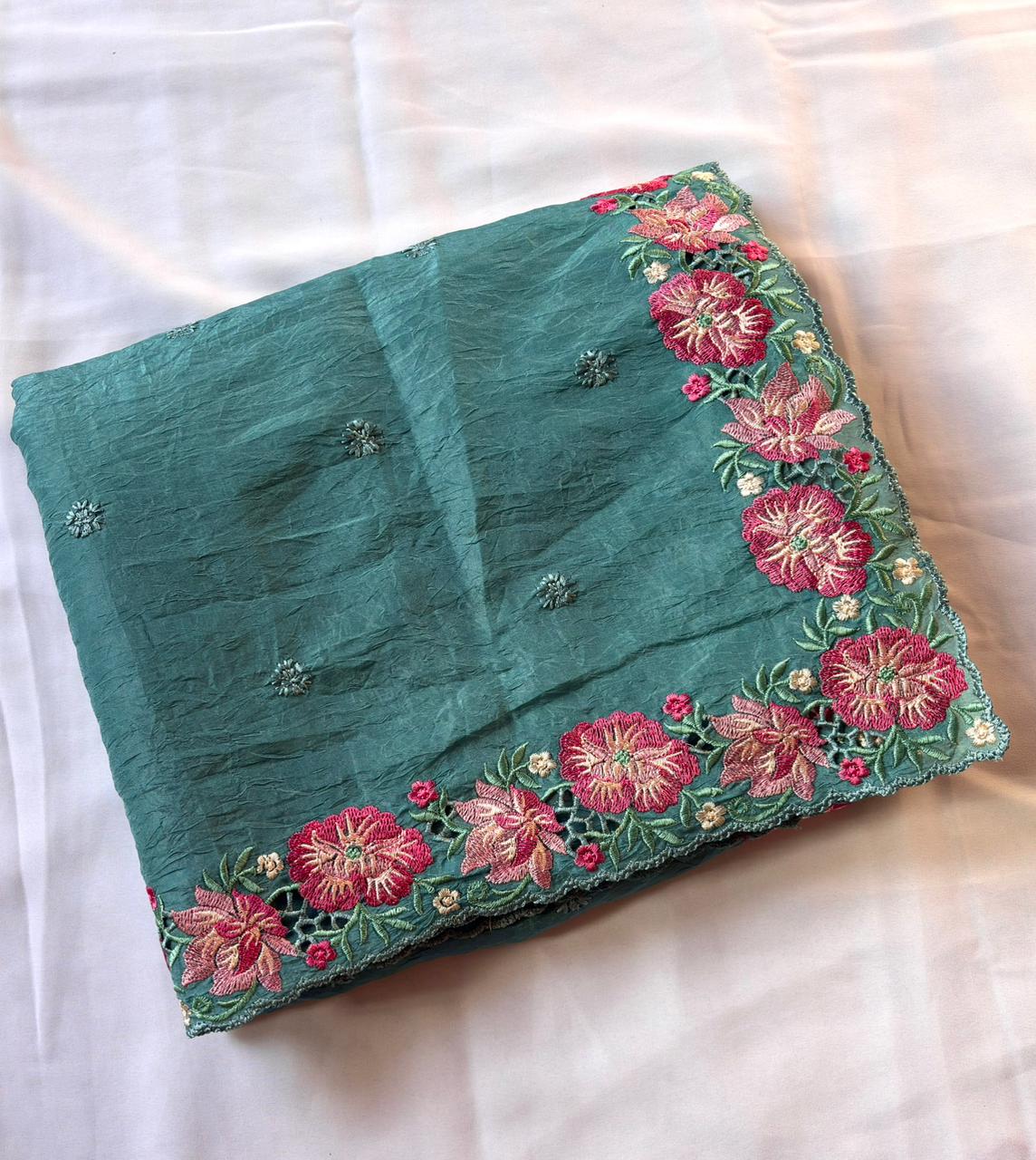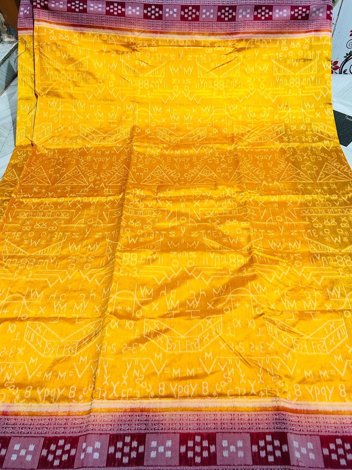 This beautiful saree is crafted from pure Mashru silk and features exquisite all-over peacock weaving that adds a regal and graceful touch. The saree is further enhanced with a necklace-designed woven border, giving it a statement look. A heavy pallu adorned with intricate multicolour thread work elevates its richness and elegance. It is paired with a plain blouse complemented by a classic zari border, perfectly balancing simplicity with tradition for a stunning overall appearance.
